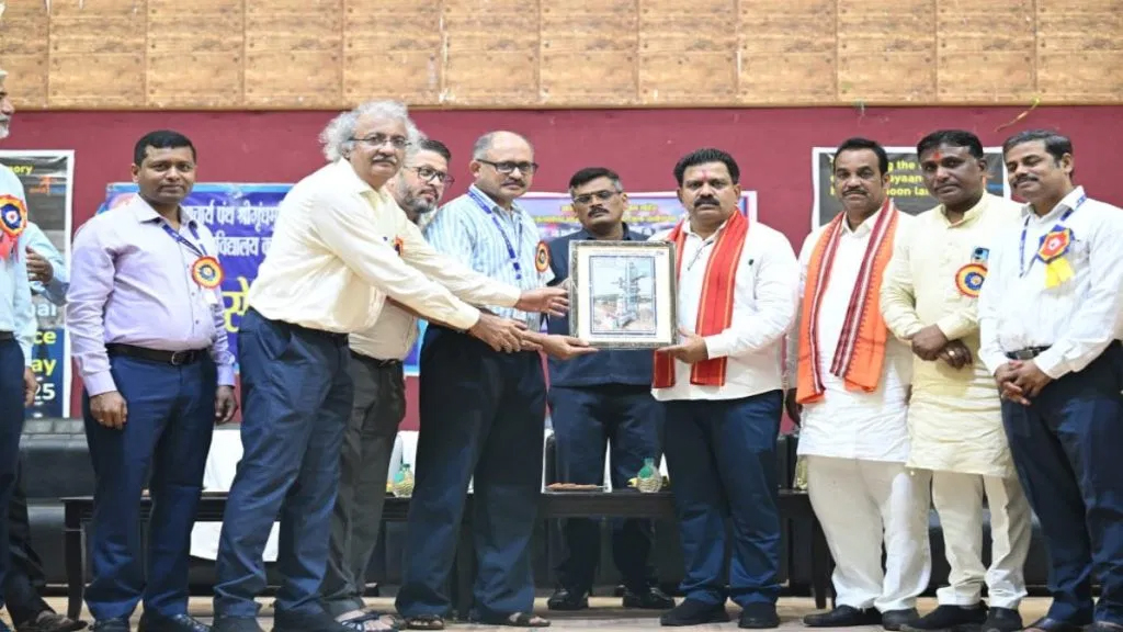कवर्धा. भारत की अंतरिक्ष विज्ञान में उपलब्धियों को आमजन, विशेषकर विद्यार्थियों से जोड़ने के उद्देश्य से नेशनल स्पेस डे 2025 के अवसर पर आज शासकीय पी.जी. कॉलेज, कवर्धा में एक विशेष विज्ञान कार्यक्रम का आयोजन किया गया. कार्यक्रम का शुभारंभ छत्तीसगढ़ के उपमुख्यमंत्री एवं गृहमंत्री विजय शर्मा ने माता सरस्वती की पूजा अर्चना के साथ किया. विद्यार्थियों ने इस अवसर पर छत्तीसगढ़ की संस्कृति और अस्मिता को समर्पित राजकीय गीत “अरपा पैरी के धार” की भावपूर्ण प्रस्तुति भी दी. कार्यकम में विशिष्ट अथिति के रूप में भारतीय अंतरिक्ष अनुसंधान संगठन (इसरो) और छत्तीसगढ़ विज्ञान एवं प्रौद्योगिकी परिषद से वैज्ञानिकगण डॉ. आनंद अरूर, जुगल किशोर मणि, अरुण एस. सूर्यवंशी, पी. काश्वेर, डॉ. अमित दुबे, डॉ. अखिलेश त्रिपाठी विशेष रूप में आमंत्रित थे. कार्यकम में जिला पंचायत अध्यक्ष ईश्वरी साहू, उपाध्यक्ष कैलाश चन्द्रवंशी, नपा अध्यक्ष चन्द्र प्रकाश चन्द्रवंशी, एवं पीजी कालेज के प्रभारी प्रचार्य डॉ. ऋचा मिश्रा , रिंकश वैष्णव सहित अन्य जनप्रतिनिधि उपस्थित थे.